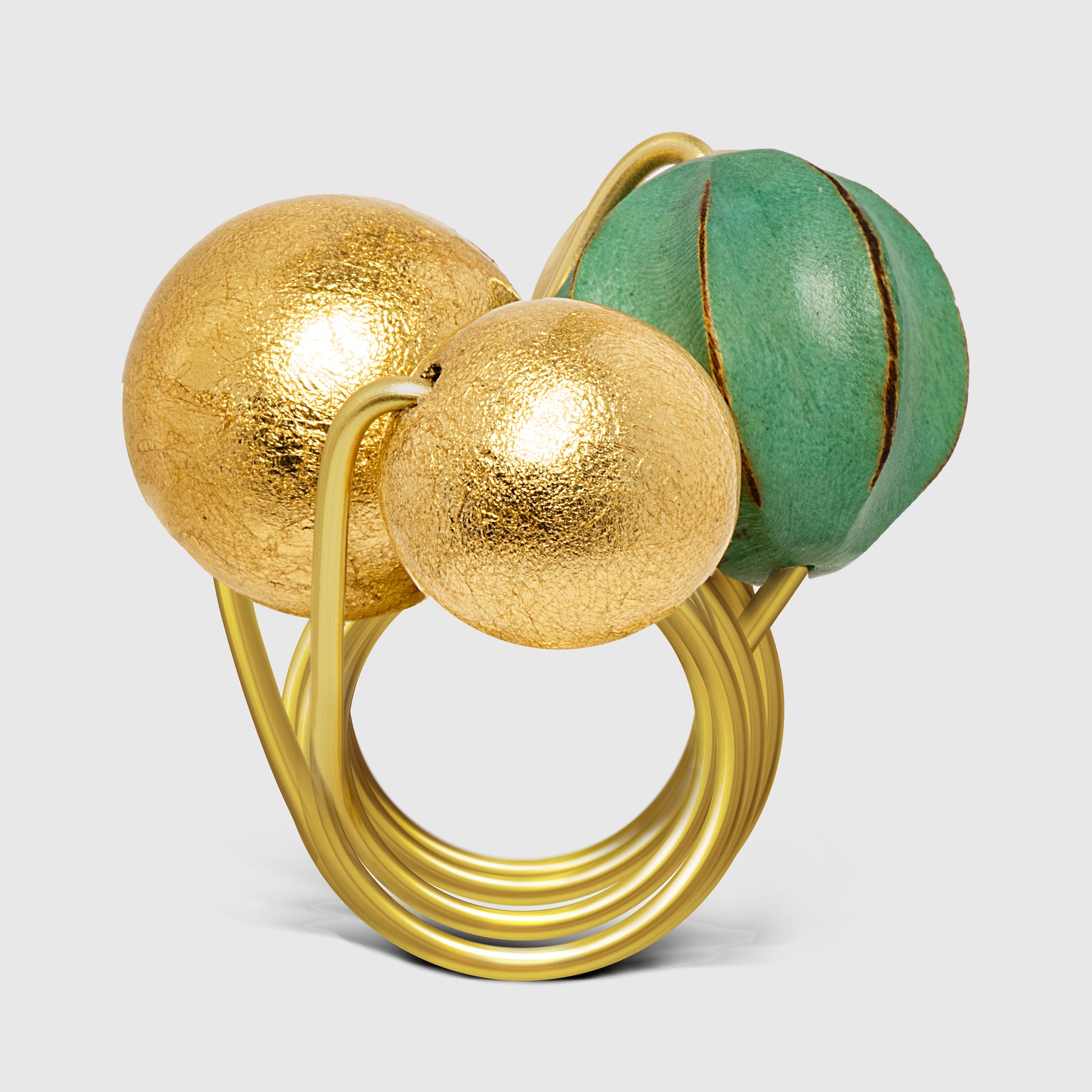 Ein ausdrucksstarker Statement-Ring, inspiriert von der Formsprache eines Kaktus. Die Kombination aus goldschimmernden Kugeln und einer mattgrünen, strukturierten Form macht Cactus zu einem echten Kunststück. Auffällig, modern und absolut einzigartig – genau der Ring, der jedes Outfit zu etwas Besonderem macht.